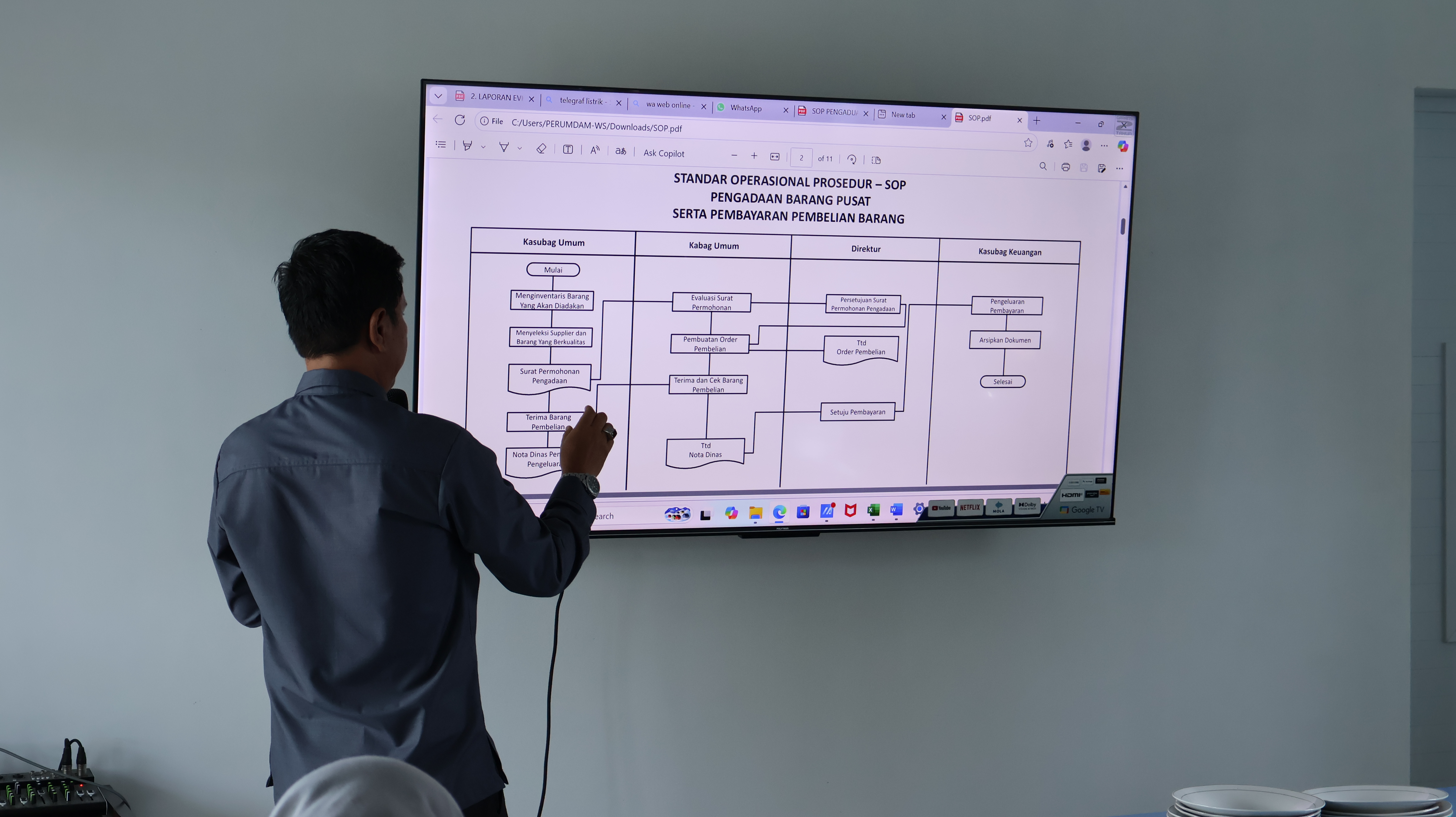 Pembahasan utama dalam rapat ini adalah peninjauan dan pembaruan SOP. Evaluasi SOP dilakukan untuk menyesuaikan dengan perkembangan kebutuhan pelayanan, pemanfaatan teknologi, serta peningkatan efektivitas dan efisiensi kerja. Beberapa SOP yang dibahas meliputi prosedur pelayanan pelanggan, operasional distribusi air, penanganan gangguan, hingga sistem internal lainnya.